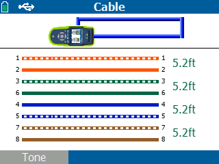 | Тестирование кабеля | Длина пар, обрывы, короткие замыкания, расщепления пар, определение типов патч-кордов (перекрест/прямой), поддержка кабельных идентификаторов |