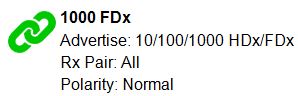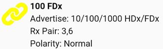 LinkSprinter способен определить скорость подключения к линии до 1 Гбит/с (1000 BASE-T). При подключении прибора к тестируемой сети Ethernet он покажет желтый индикатор если скорость соединения 100 Мбит/с и сообщит о параметре передачи (Duplex).