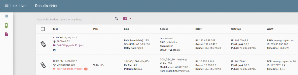Link-Live предлагает два уровня облачного сервиса: Essentials (бесплатное) и Job Pro (по платной подписке). Essentials поставляется со всеми моделями LinkSprinter и LinkRunner AT, обеспечивая важные возможности управления результатами тестов и создания отчетов. Job Pro расширяет возможности Essentials, превращая ее в более усовершенствованную платформу управления результатами тестов, обеспечивающую лучшую видимость работ, контроль над проектами и управление тестерами и пользователями. Job Pro — услуга платная, доступная по подписке на 1 год и 3 года.