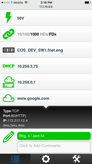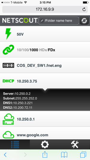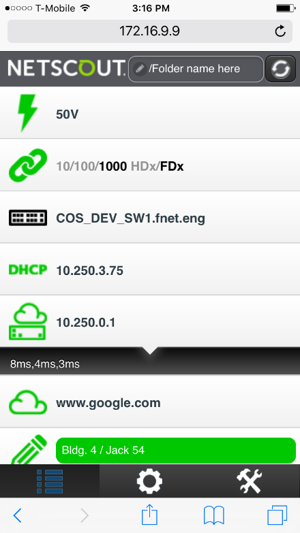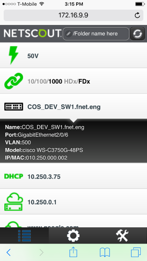 LinkSprinter 300 позволяет опросить коммутатор по протоколам CDP, LLDP, EDP для определения имени коммутатора и порта на который подключен тестируемый кабель. Выполнять просмотр результатов\отчетов, повторный запуск тестов, а так же конфигурацию прибора с браузера любого смартфона, планшета, ноутбука, предварительно подключившись по Wi-Fi к встроенной точке доступа LinkSprinter. Установка дополнительных приложений не требуется!